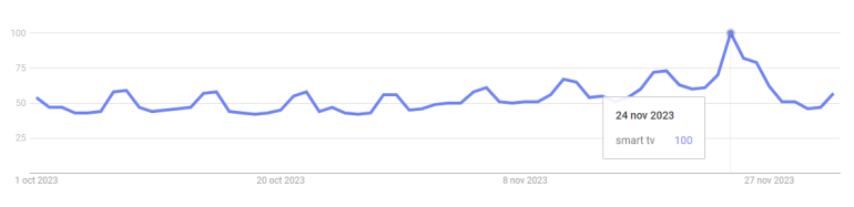 Sebbene appartenga all’Elettronica, merita di essere evidenziato separatamente. La categoria di televisori e monitor è una delle più richieste durante il Black Friday, poiché molti consumatori approfittano delle offerte per aggiornare i loro dispositivi. Con una grande varietà di modelli e tecnologie disponibili, questo è il momento ideale per aumentare le tue vendite nel settore dell’elettronica. Durante questo periodo, gli utenti cercano di risparmiare su prodotti il cui prezzo è più elevato durante l’anno, come può accadere con le Smart TV, e vediamo che durante il Black Friday 2023 c’è stato un aumento delle ricerche per questo termine.