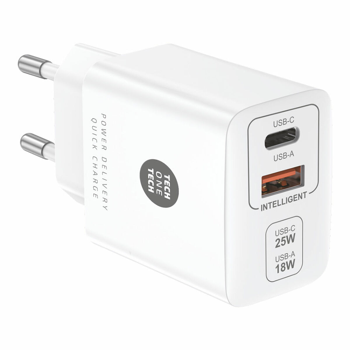 Veggladeren TEC2267 fra Tech One Tech er en enhet designet for å tilby en allsidig og effektiv løsning for lading av elektroniske enheter. Denne dockstation utmerker seg ved å inkludere en USB Type-C-utgang sammen med en standard USB-port, noe som muliggjør samtidig tilkobling av flere enheter og tilpasser seg ulike ladebehov. Dens leveringskapasitet på opptil 3A sikrer rask og sikker lading, kompatibel med et bredt spekter av smarttelefoner, nettbrett og andre USB-kompatible enheter. Modellen har også et europeisk (EU) støpsel, som gjør den enkel å bruke i land med denne standarden, og gjør den til et ideelt tilbehør både hjemme og på reise. Den hvite fargen gir et rent og diskret utseende som passer inn i alle miljøer. Denne laderen kombinerer enkelhet og teknisk effektivitet i et kompakt og praktisk format, som møter dagens krav til tilkobling og ladeeffekt. Kort sagt, TEC2267 fra Tech One Tech er et funksjonelt og kompatibelt valg for brukere som trenger pålitelig og flerfoldig strømtilførsel til sine elektroniske enheter.